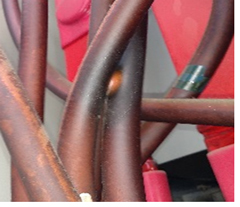 Corona discharge is caused by the ionization of the air around a high voltage conductor, resulting in current leakage and the production of nitric acid (HNO3) that can degrade metals and insulting materials. Corona can also create a path for electrical tracking, causing an electrical breakdown on the surface of insulating material and a low current pathway to ground across an insulator.