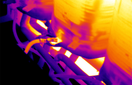 Como se puede observar en la imagen térmica a continuación, la conexión eléctrica de la fase central del transformador seco presenta un patrón térmico diferente al ser comparado con las conexiones de las otras dos fases. Lo anterior podría ser indicación de una alta resistencia de conexión eléctrica. De igual manera siempre es recomendable verificar la carga de las tres fases para constatar que se trata de un circuito balanceado.