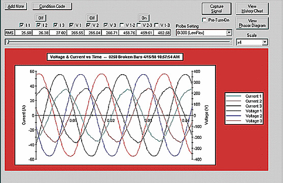Misalignment of the motor driven components can cause the same effect. Not only that, but driven component misalignment can exacerbate motor bearing problems as well. Misalignment problems are among the issues that Energized EMT can help us discover, due to the impact that this has on the electromagnetic fields of the motor. When the fields are not in precise proximity to one another the voltage, and current sine waves supplying the motor, will show distortion that corresponds to the magnetic interference caused by the eccentricity between the rotor and stator. You didn’t realize it was as simple as that did you? Well it isn’t, really. This is Motors 101 remember? Understanding the waveforms and interpreting the data provided by the Energized EMT test set takes experience.