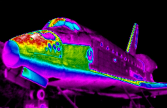 Existen una gran variedad de aplicaciones para la Termografía. Una de estas aplicaciones son los ensayos no destructivos o NDT (Nondestructive Testing, por sus siglas en inglés). En la industria aeroespacial se utilizan materiales compuestos que pueden estar construidos con múltiples capas de diferentes tipos materiales que se encuentran unidas. Estos materiales compuestos pueden ser utilizados por ejemplo en la fabricación de variadas piezas de aeronaves. Con Termografía se puede realizar inspecciones de NDT ya sea en el proceso de fabricación o mantenimiento de dichas piezas de material compuesto. Algunos de los principios fundamentales de este tipo de inspecciones es analizar la transferencia de calor a través de las capas del material y los cambios en la capacitancia térmica. En ambos casos básicamente lo que se busca es detectar los posibles cambios en el patrón térmico superficial en la pieza analizada, los cuales podrían ser causados por variaciones en las capas de material y variación en la capacitancia térmica. Algunas metodologías para realizar inspecciones de ensayos no destructivos podrían ser: Pasiva, donde se utiliza el calor generado por el normal funcionamiento de los equipos. Activas, donde se busca inyectar o quitar energía térmica a una pieza de material para poder analizar sus cambios en el patrón térmico superficial en función del tiempo. Por último podría realizarse inspecciones de Pulso Activo, que tiene ciertas similitudes a las inspecciones activas, pero donde la inyección de energía puede ser realizada mucho más rápida a manera de pulsos y donde podría tomarse un gran número de imágenes térmicas en un tiempo más corto. Se debe recordar que las cámaras termográficas no pueden ver a través de la mayoría de materiales, por lo que únicamente se estaría inspeccionando el patrón térmico superficial de los materiales, por lo que se debe tomar en cuenta la emisividad de la superficie inspeccionada.