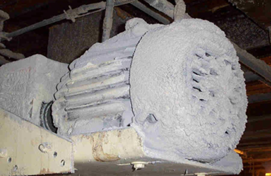 The capacitor is formed by the motor’s current-carrying conductors (usually copper) as one of the plates of the capacitor, and the motor core as the other plate. The insulation around the conductors acts as the dielectric for this capacitor. Adding contamination to the surface of the insulation changes the dielectric which increases the capacitance to ground value. The increase of contamination, essentially blanketing the insulation, will increase the winding temperature. The increase in winding temperature can cause the insulation to become embrittled. Embrittled insulation can crack and allow moisture or other contaminants into the windings, resulting in lower ground resistance.