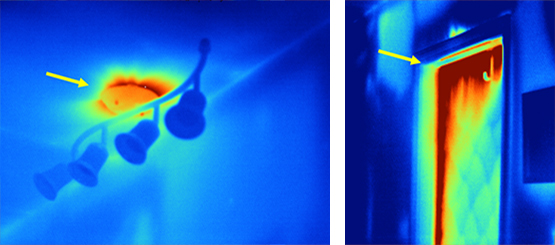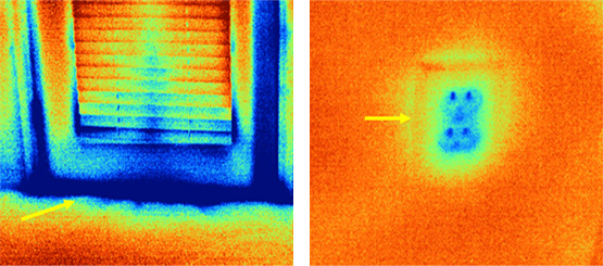 In the images above we can detect a thermal patter that ‘suggests’ that warm air is infiltrating, heating up surfaces that it comes in contact with.