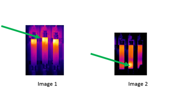 The position of the elements or segments in the fuse body will affect what we see thermally. This is usually more apparent in dual-element, time-delay fuses. If the components within the body of the fuse are not centered, this can cause varying thermal patterns on the surface of the fuse (Image 2 above).