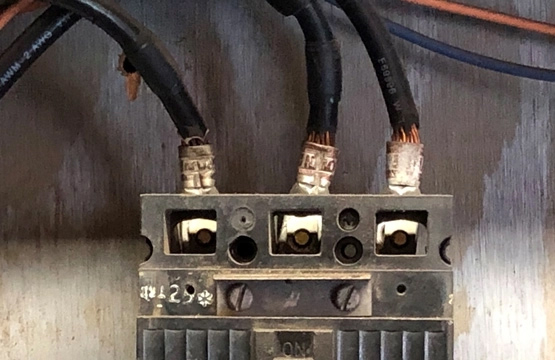 Le défaut le plus commun est provoqué par les fils et les cosses terminés de matériaux différents. Cette pratique doit être évitée autant que possible, sinon mieux vaut y appliquer un anti-oxydant. Evidemment, il y aura beaucoup de fois quand ceci n’est pas fait, même lorsque la pratique habituelle est de terminer conducteurs en cuivre avec des cosses en aluminium. Ainsi, deux scénarios peuvent se produire. Puisqu’il s'agit de matériaux différents, il va de sens que l'aluminium et le cuivre aient des propriétés physiques différentes, y compris leur expansion et contraction. Au fur et à mesure que la charge varie sur la connexion, le niveau de chaleur variera aussi. Par conséquent, le conducteur et la cosse se dilateront et se contracteront, mais de façon différente. Le résultat est un desserrage qui augmente la résistance électrique.