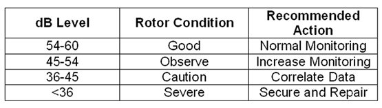 The noise or dB level of these sidebands is indicative of the severity of the rotor fault. When a dB value of < -35 dB is noted, immediate action should be taken.