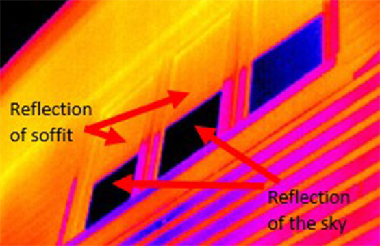 Hence, glass appears to be reflective, but in most cases only marginally so. It is however highly specular, so whatever reflections we do detect are intensely sharp due to their specularity. This gives the untrained thermographer the impression that glass is very reflective and even though glass is very specular in its reflection, that reflection contains very little energy. If you attend one of our courses and continue to Think Thermally®, these conditions won’t fool you.