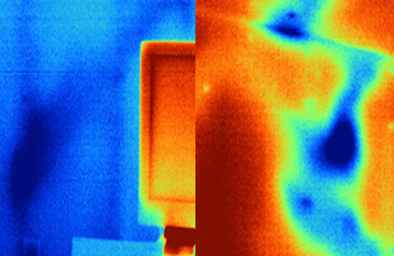 A complete building inspection usually consists of two parts in which the conduction inspection needs to be completed before the air leakage inspection. In this tip discussion, we will cover the conduction inspection and the influence of air leakage during the inspection. During the conduction part of the inspection, the thermographer looks for anomalies or variations in the thermal pattern of walls and ceilings. These changes and differences can indicate missing, damaged, or incorrectly installed insulation. To successfully detect conduction losses or gains in a building it is absolutely necessary to have a sufficient ΔT between the inside surface and the outside surface of the walls. ASTM Standard C1060 recommends a stable ΔT of at least 18°F (10°C) between the inside surface and the outside surface of a wall to perform a conduction inspection on a building with IR.