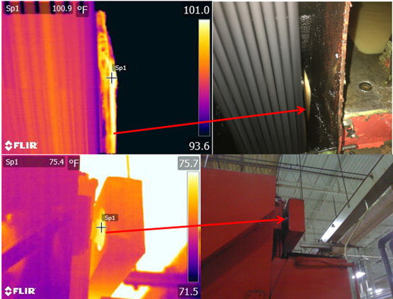 Next, we will look at the external bearings of the equipment looking for excessive heating that may give us clues of damage to the system.